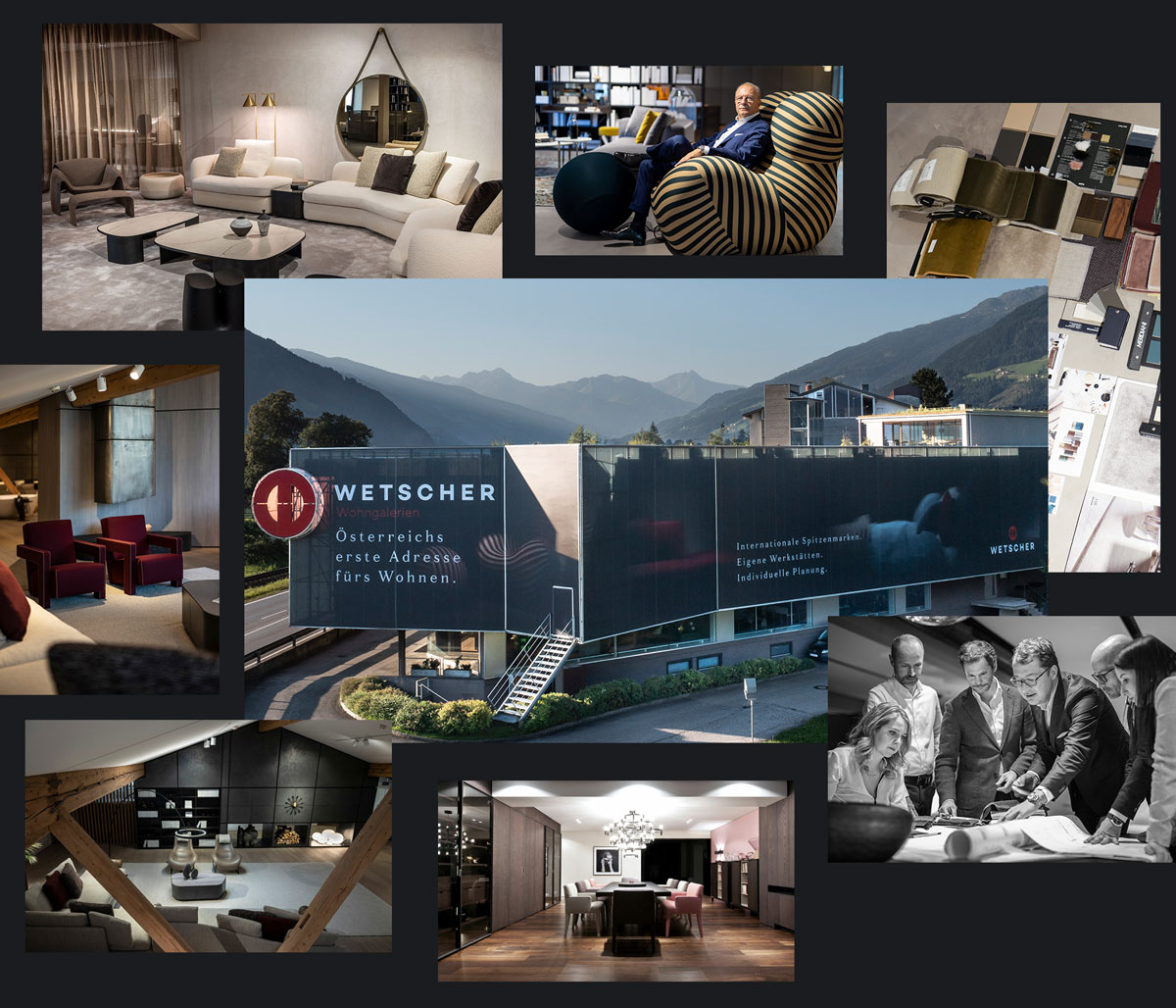 Maßgefertigte Handwerkskunst, internationale Designgrößen und individuelle Planungslösungen aus einer Hand – all das findest Du in den Wetscher Wohngalerien, gleich gegenüber von Wetscher Max in Fügen!