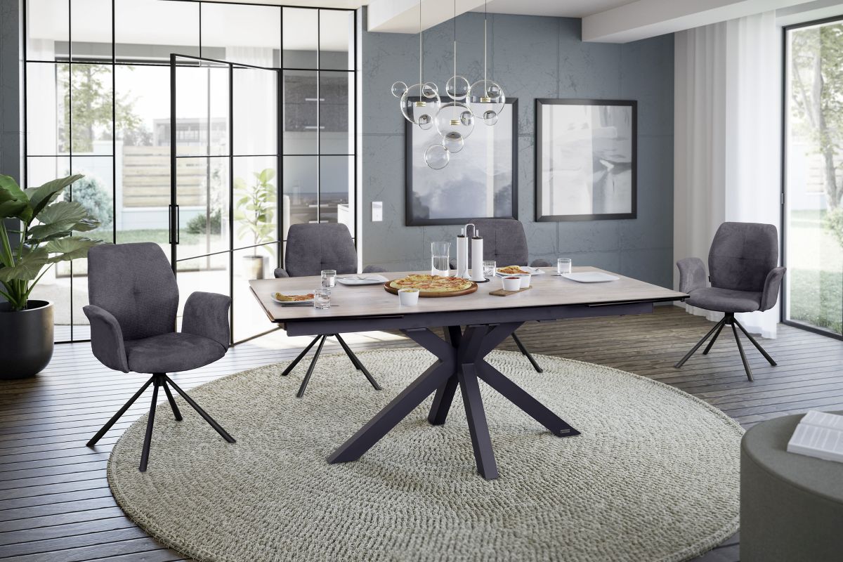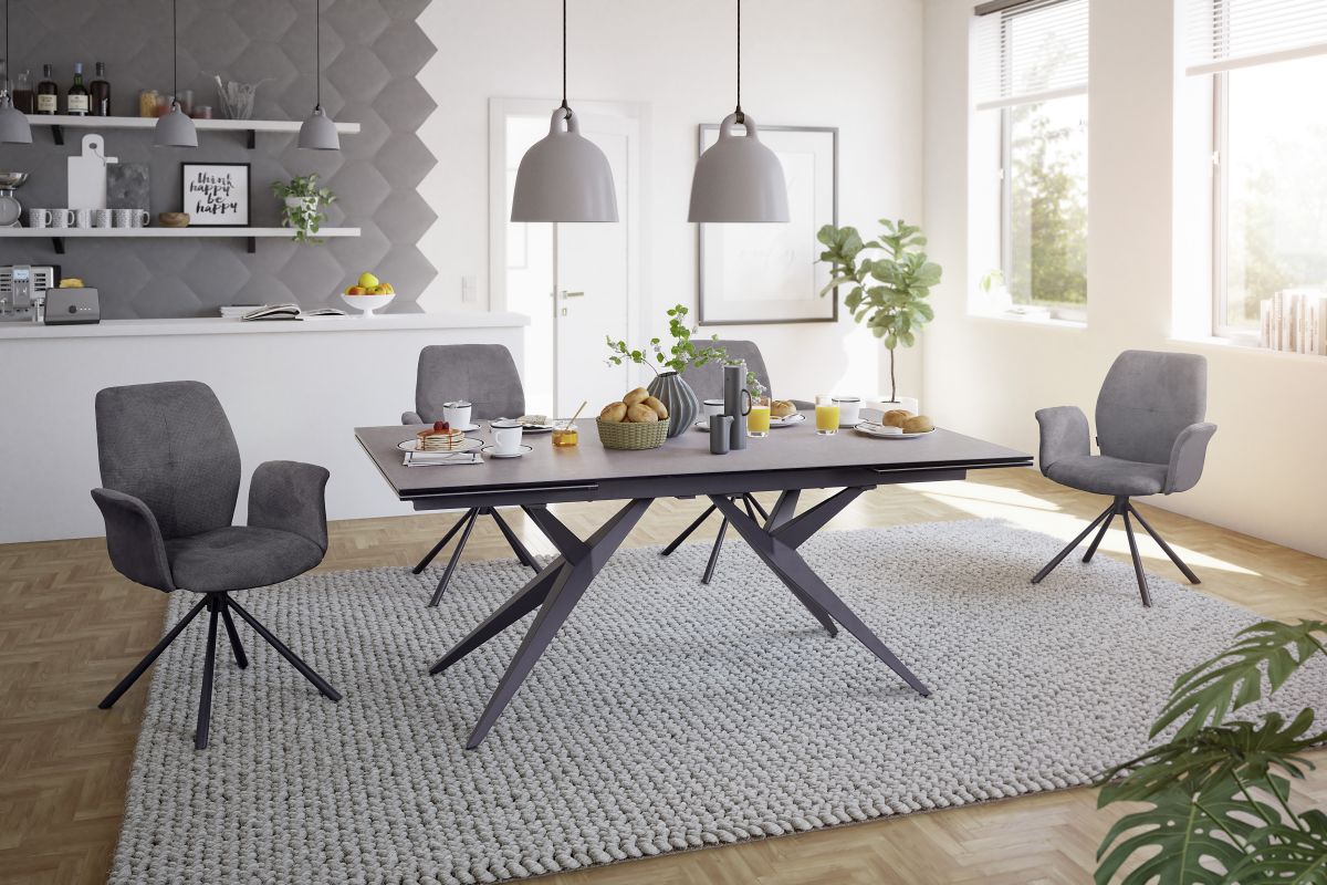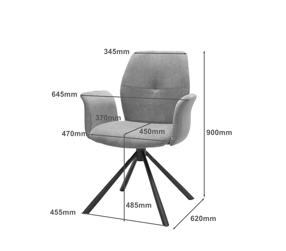 Gestell: 4 Fuß, Metall schwarz, drehbar, Sitzhöhe: ca. 49 cm