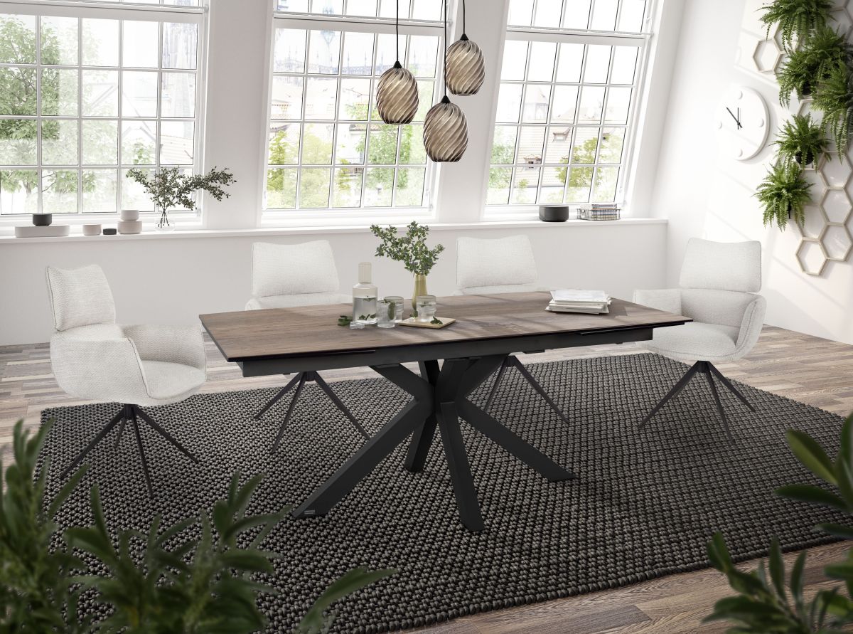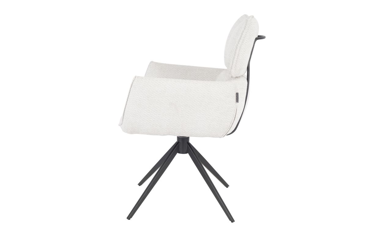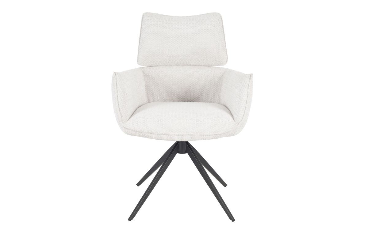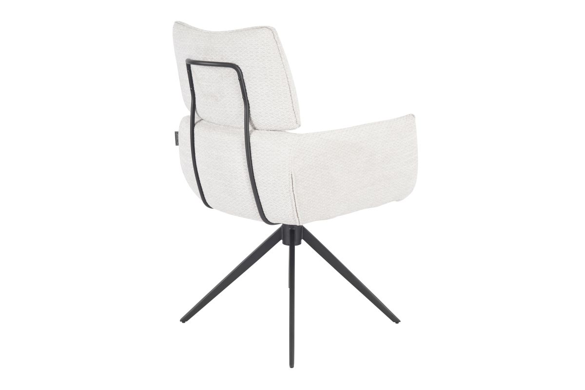 Sitzkomfort und Optik 100%! Weicher Webstoff, leicht schräger Rücken mit Detail aus schwarzem Metall auf hinten und eine 360 Grad Drehfunktion.