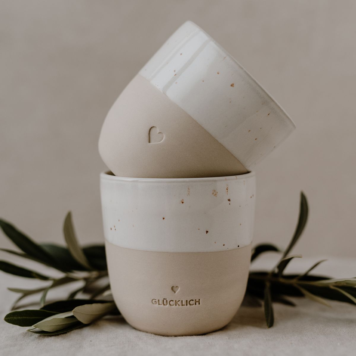 Dieser Becher wird mit der Hand gefertigt, gebrannt, geprägt, abgeschliffen, geglazt & nochmal gebrannt werden, gibt es Unterschiede in der