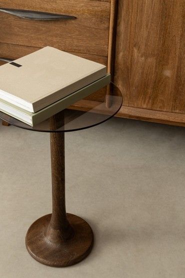 Stabiles massives Gestell und als Kontrast eine leicht gefärbte Glasplatte. Mit diesem Beistelltisch kannst du auf jeden Fall punkten.