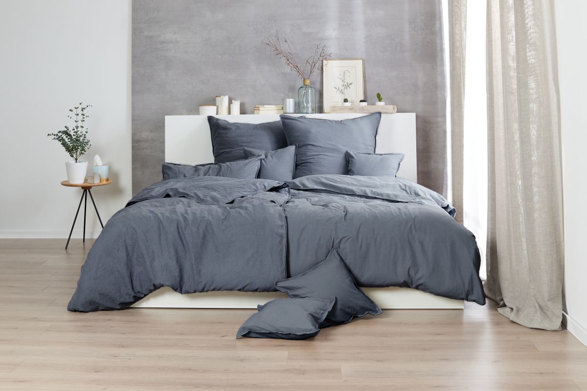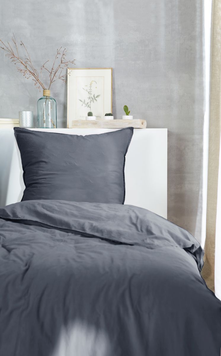 Die Bettwäsche STONE washed besteht aus einem weich strapazierfähigen Gewebe aus Baumwolle und ist in vielen Farben erhältlich. Der Stoff hat einen