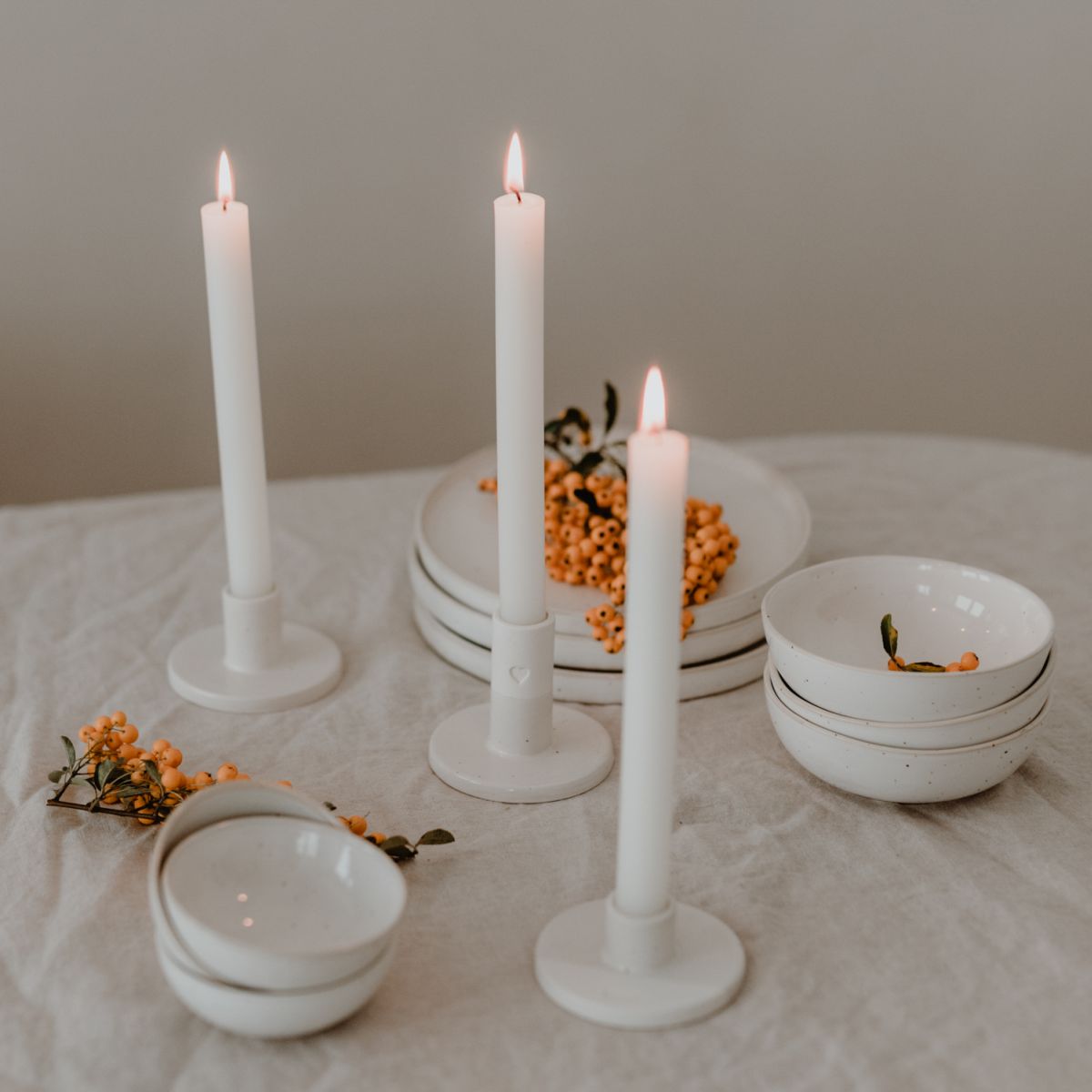 Verzaubere dein Zuhause in Kerzenschein mit unseren neuen handgefertigten Kerzenhaltern - wie unseren Kerzenständer Herz groß. Er ist für klassische Stabkerzen mit einem Durchmesser von 22mm und wird durch seine besondere Herz Blindprägung ein Hingucker bei Tag und Dämmerung. So wird die gemütliche Jahreszeit noch romantischer. Unseren Kerzenständer Herz gibt es in 3 verschiedenen Größen. Dekoriere zusammen und gestalte so eine wundervoll harmonische Atmosphäre.
