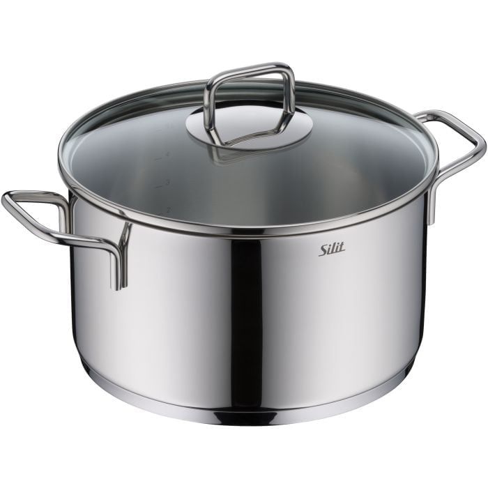 einem breiten Schüttrand für müheloses Servieren und eine makellose Küche. Der SiliTherm®-Universalboden bietet volle Kompatibilität mit allen Herdarten, einschließlich Induktion, während die hochwertigen Glasdeckel mit Edelstahlgriff eine reibungslo