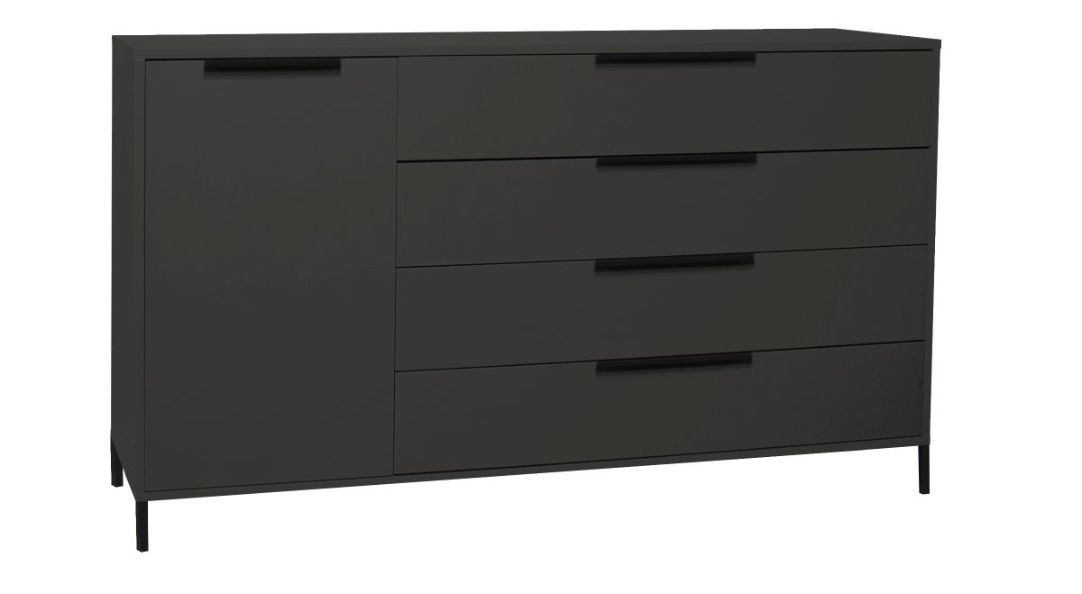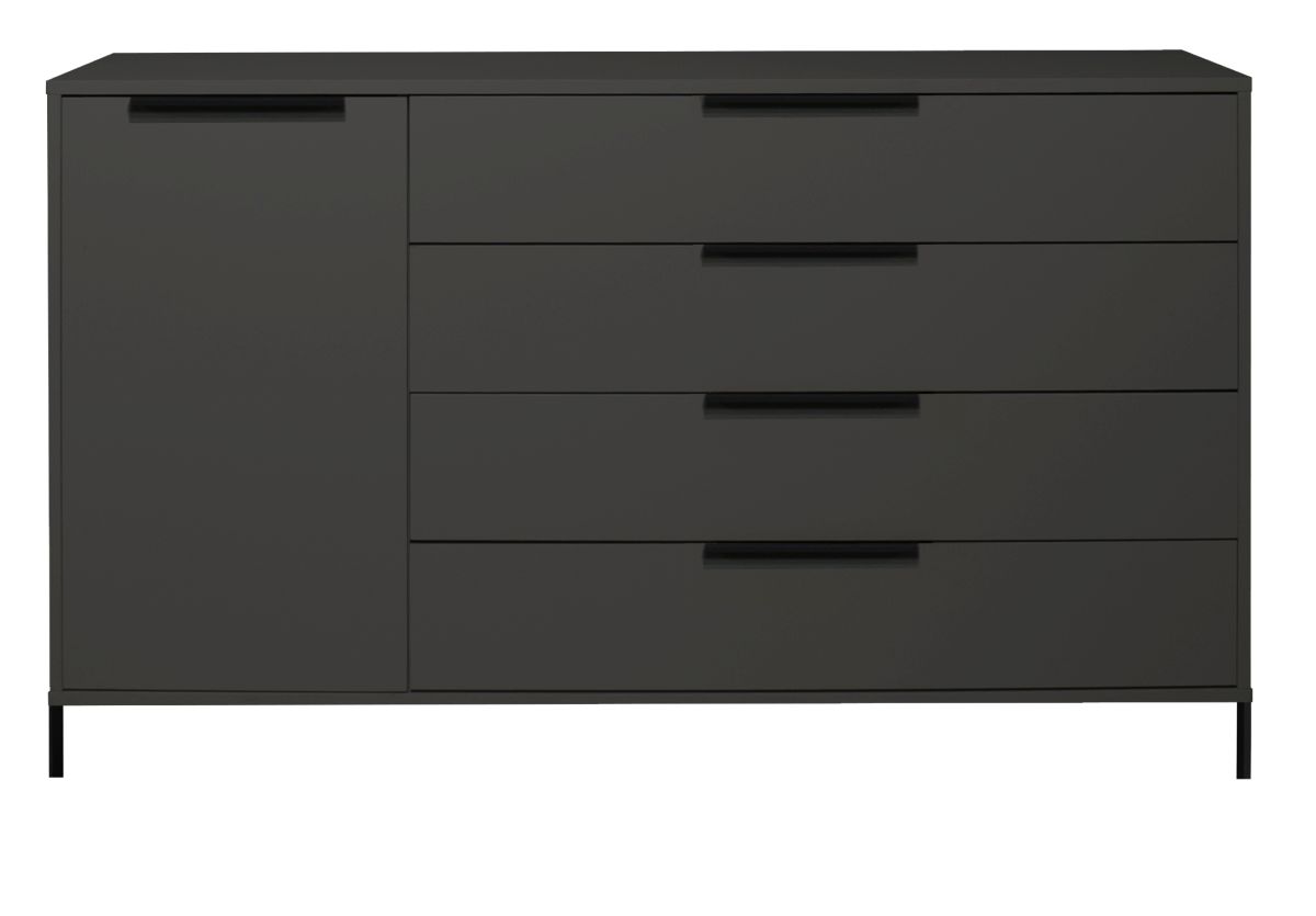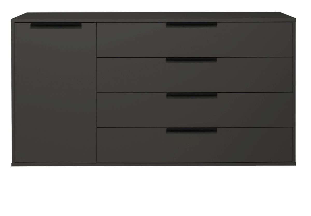 Front: 4 Schubkästen und 1 Tür mit kratzfester Melaminharzfolie, Dickkante,