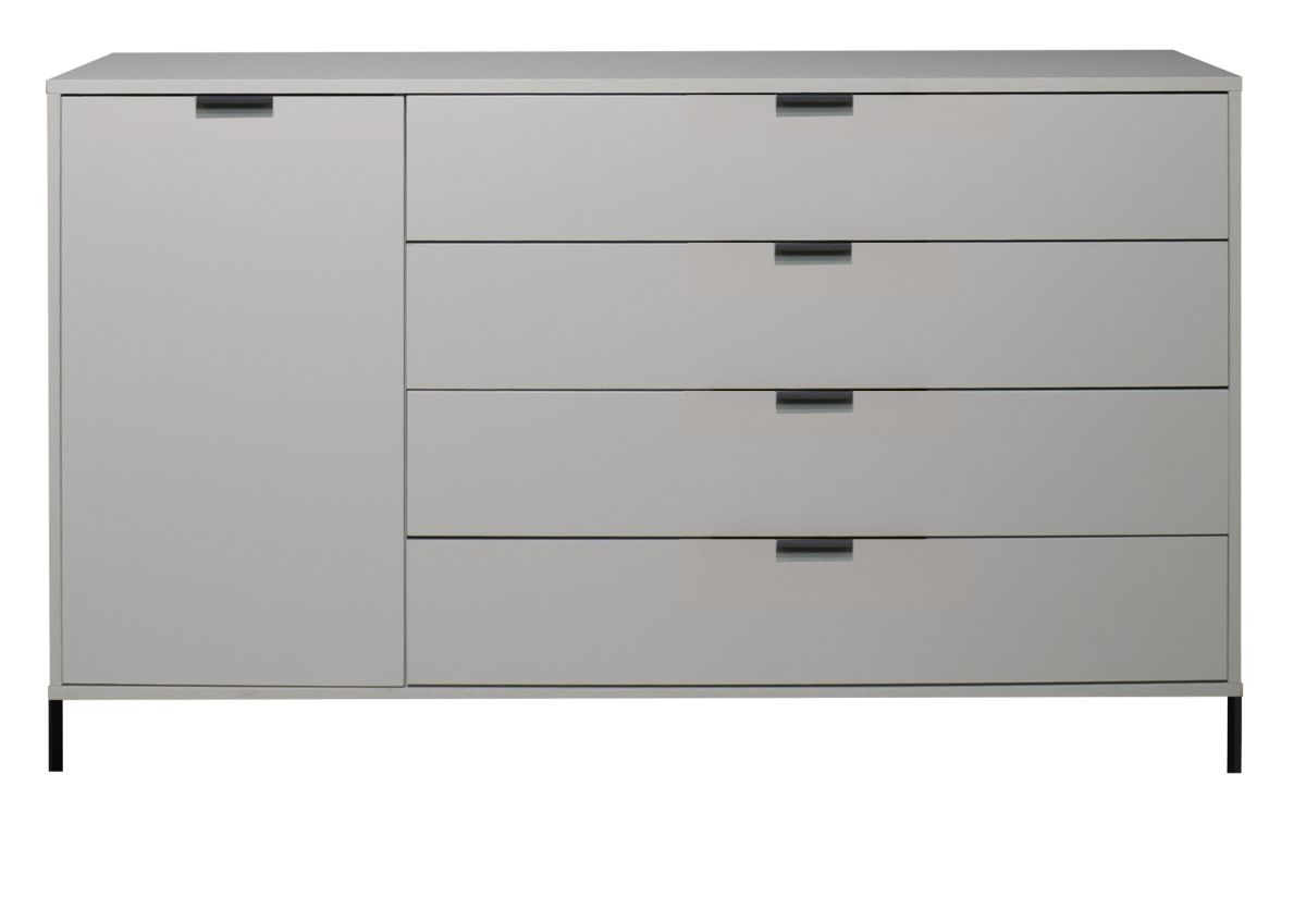 Front: 4 Schubkästen und 1 Tür mit kratzfester Melaminharzfolie, Dickkante,
