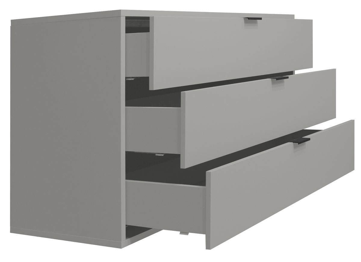 Front: 3 Schubkästen mit kratzfester Melaminharzfolie, Dickkante,