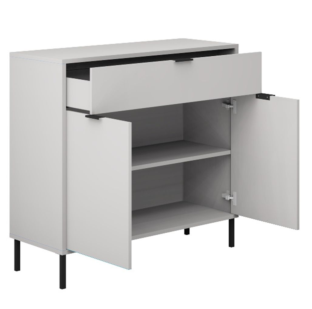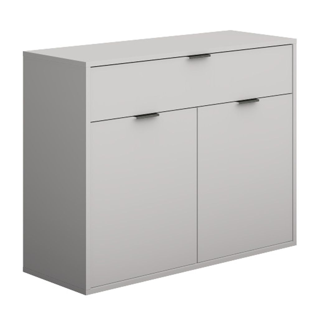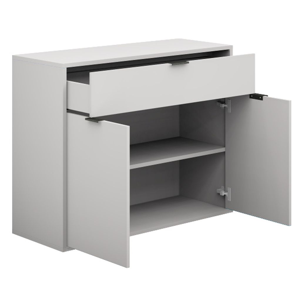 Front: 2 Türen und 1 Schubkasten mit kratzfester Melaminharzfolie, Dickkante,