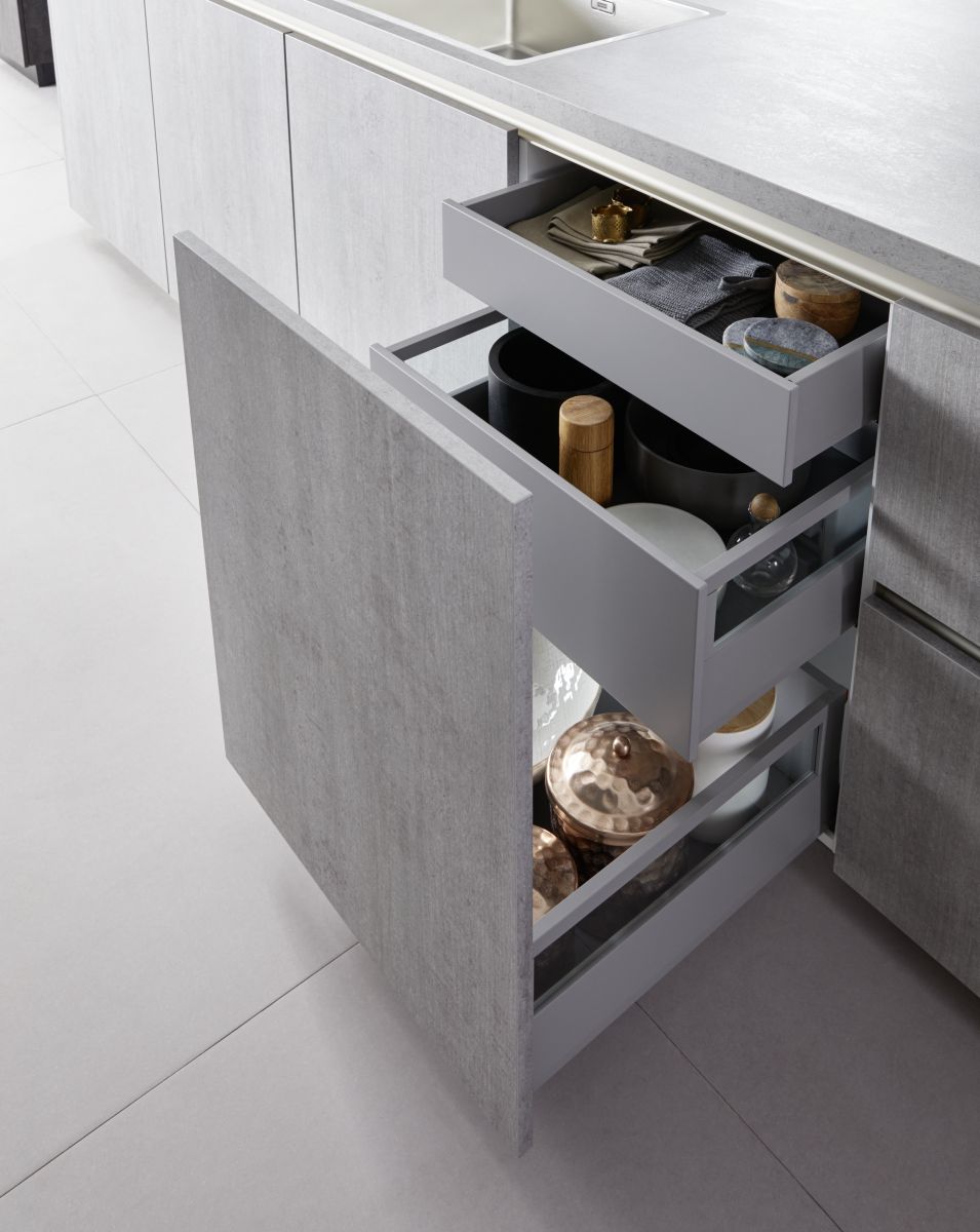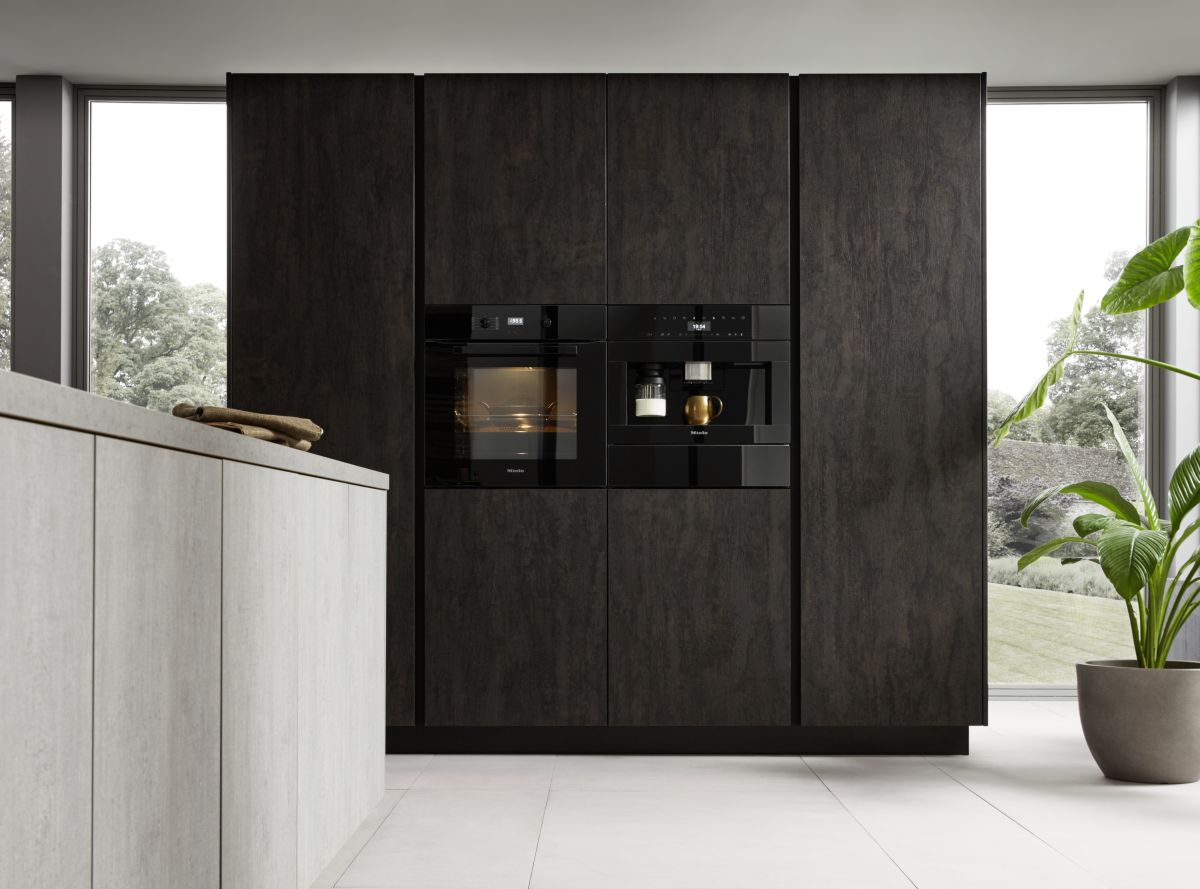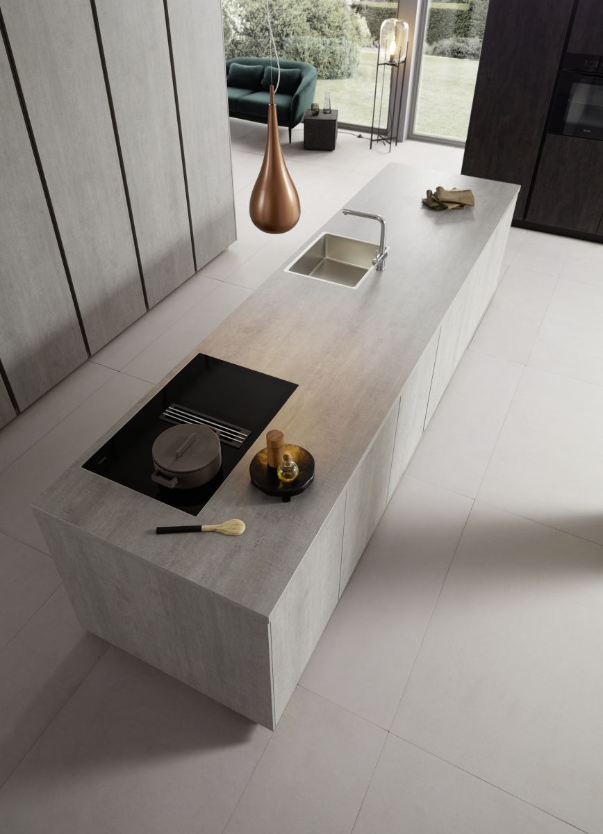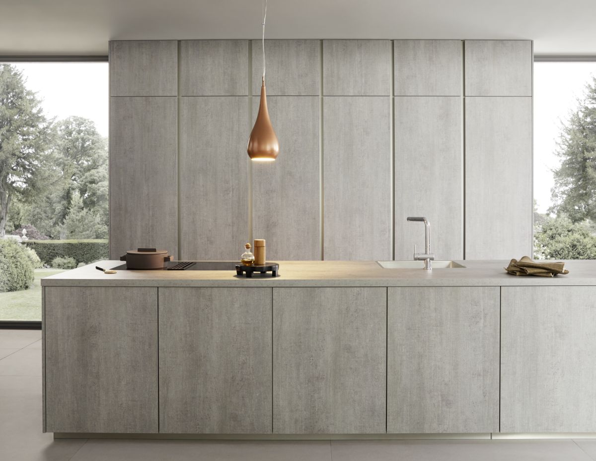 Kombination mit Beton Nebelgrau Nachbildung und Flammeiche schwarz Nachbildung