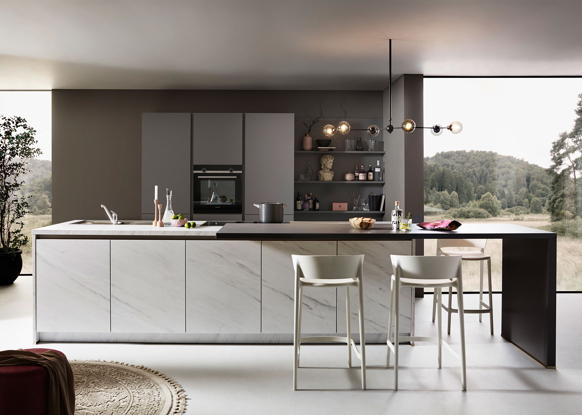Die hochmoderne Küche CONTORNO überzeugt mit schlichtem Design und Funktionalität. Black is beautiful.
