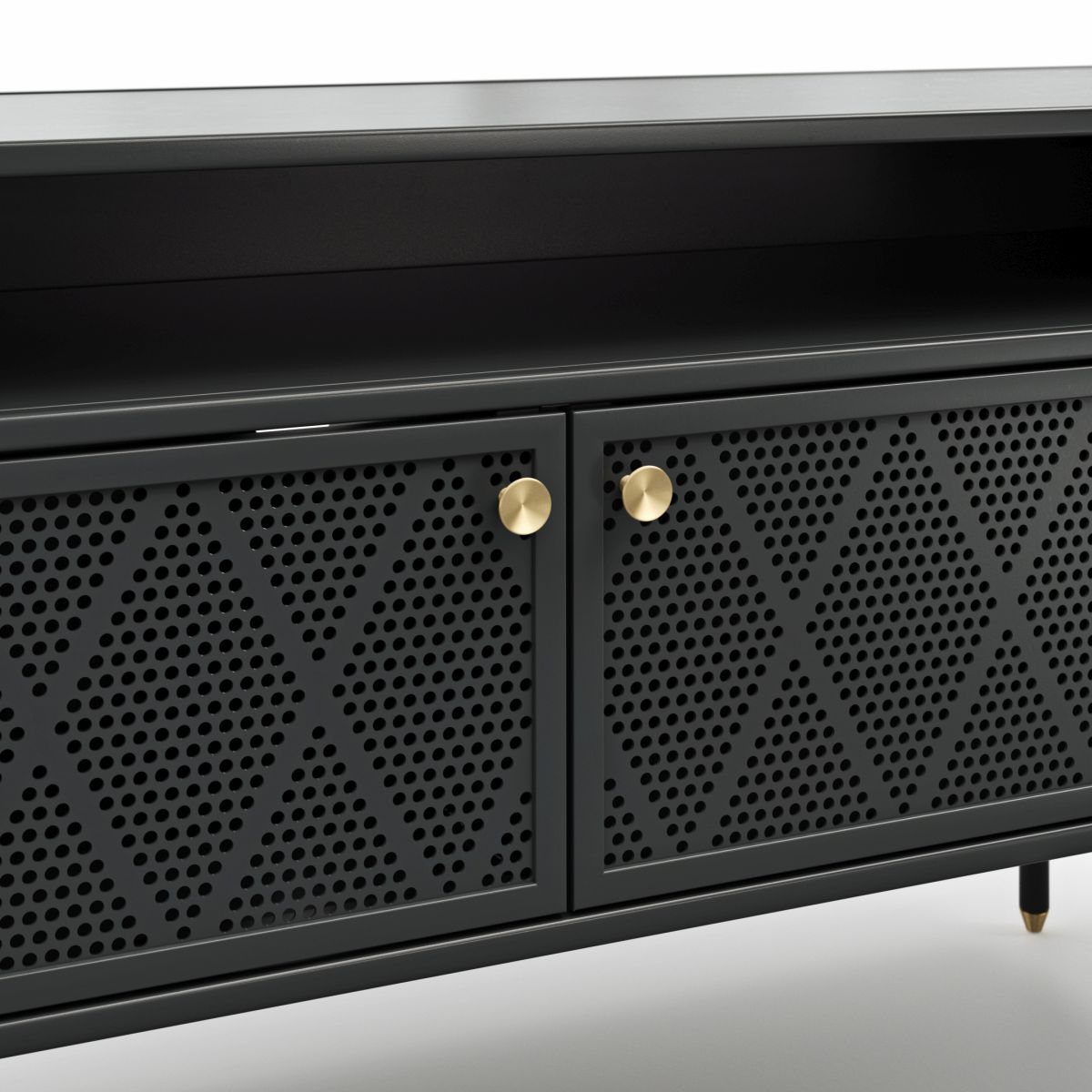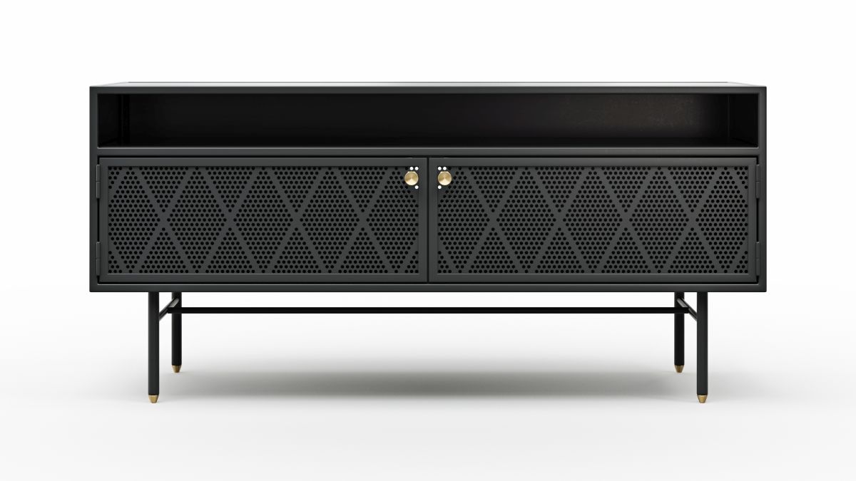 Gestell: Metall schwarz pulverbeschichtet mit bronzefarbigen Kappen