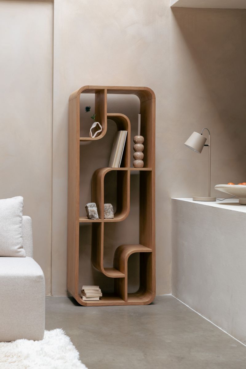 Das einzigartige Regal aus Eichenfurnier besticht mit seinem besonderen Holzdesign und den sieben organisch geformten Fächern. Und noch eine Besonderheit bietet ZAFIRA - du kannst das bereits montierte Regal horizontal oder vertikal stellen.