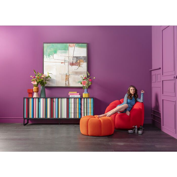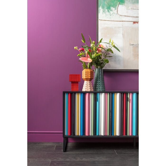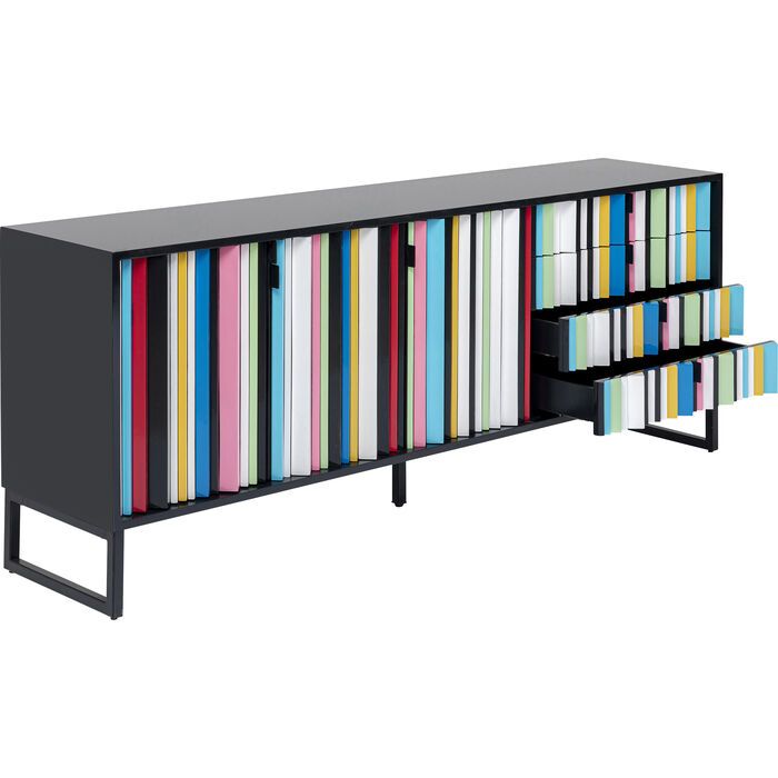 Design-Philosophie. Bei diesem Sideboard gibt er den äußerst lebendigen, farbenfrohen Fronten mit gradlinigem Korpus und Gestell einen schlichten