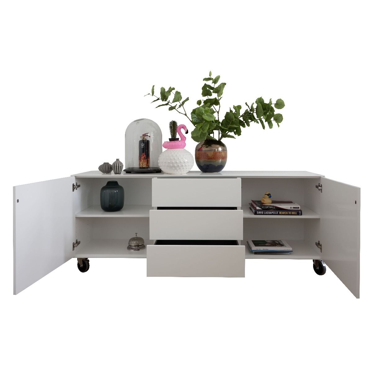 Das moderne Sideboard Henri Roll überzeugt mit seiner geraden Linienführung und einer schlichten, zeitlosen Optik. Durch die sechs fixierbaren Rollen lässwt sich dieses Sideboard bei Bedarf ideal verschieden, wodurch die Umgestaltung deines Zuhauses erleichtert wird. Mit den drei Schubladen mit Vollauszug, sowie den beiden Türen ist dieses Wohnzimmer Möbel allerdings nicht nur schön, sondern auch ein wahres Platzwunder.