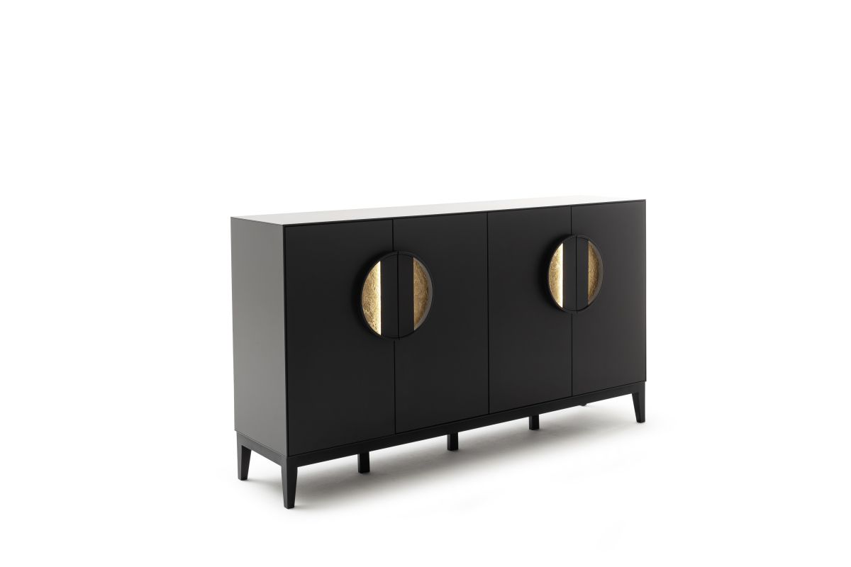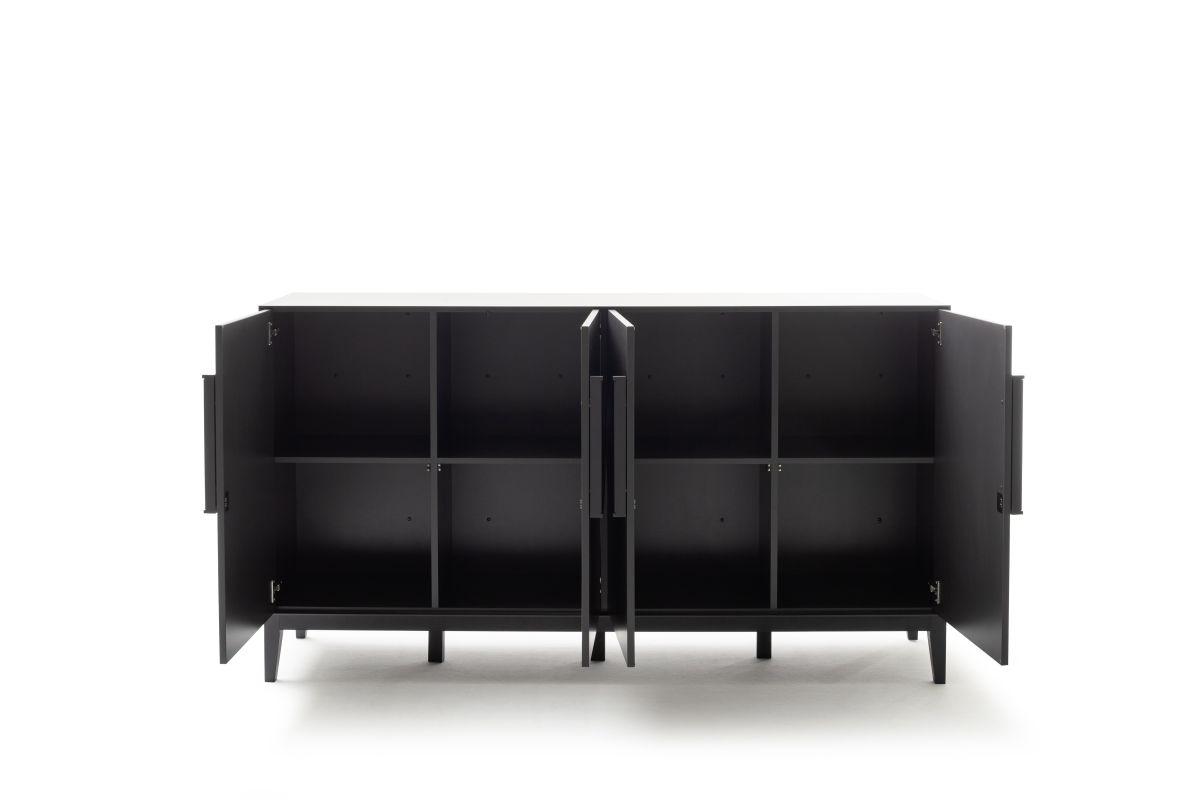 Korpus und Front: beschichtete Spanplatte schwarz lackiert, 4 Türen mit Push-To- Open