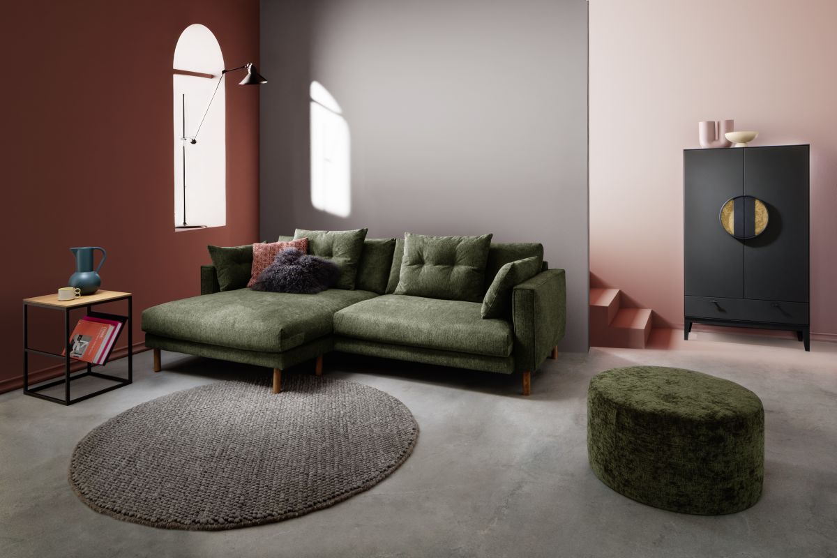 bestehend aus "Sofa mit Anbauhocker der links oder rechts als Erweiterung angehängt werden kann"