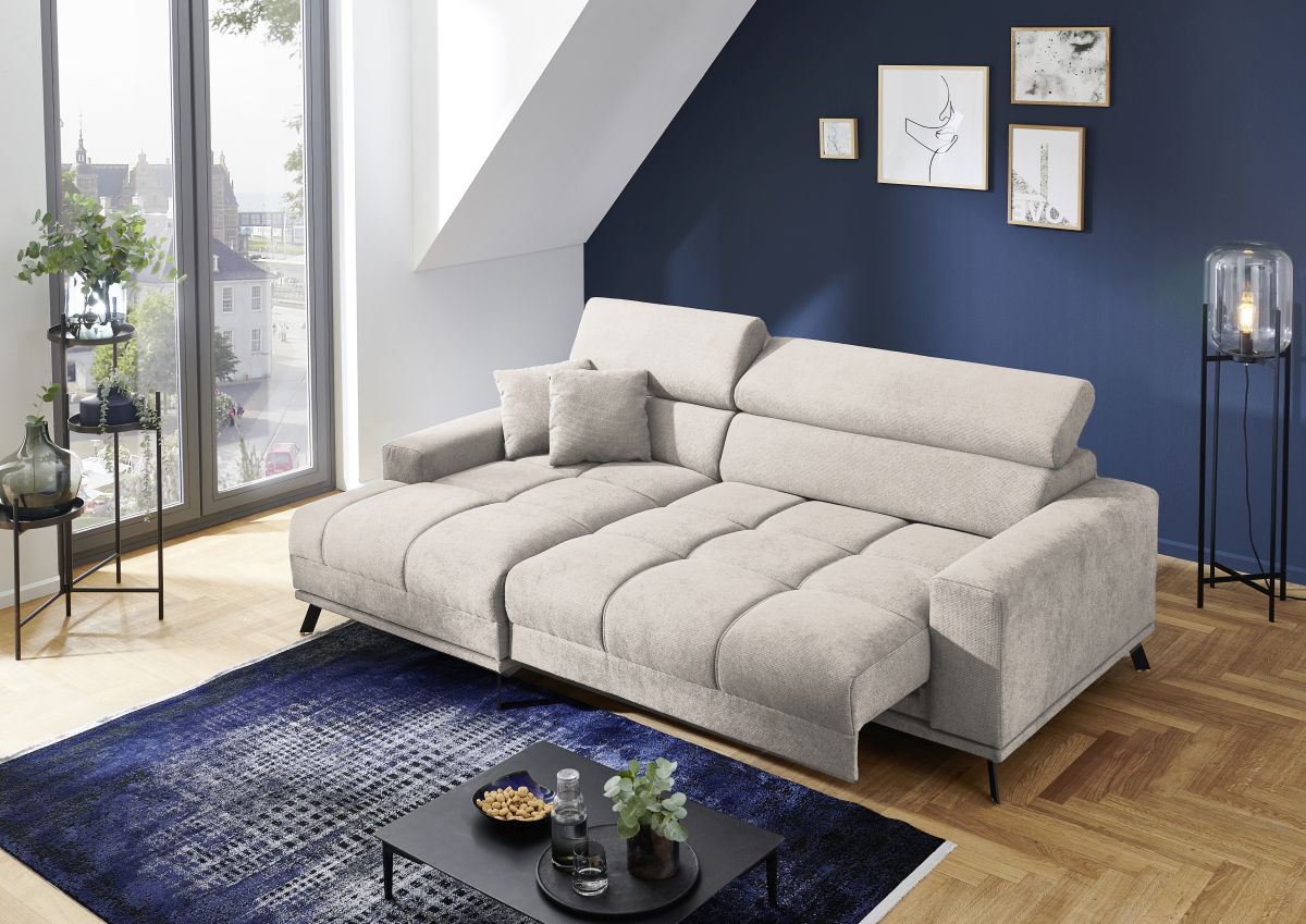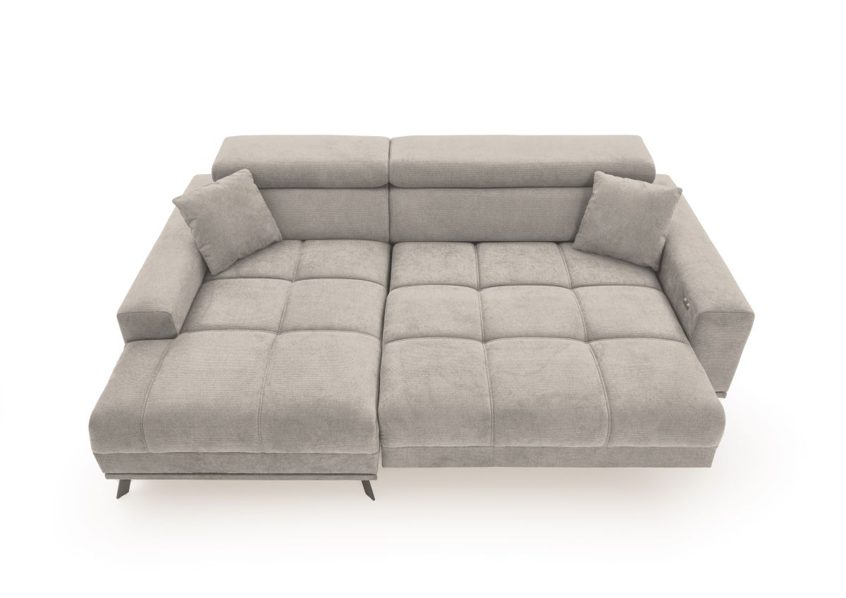 Aufgrund der motorischen Funktion ändern sich beim Ausfahren die Spaltmaße!!! Ottomane nach Ausfahren nicht ganz bündig, Quernähte nach Auszug versetzt.
