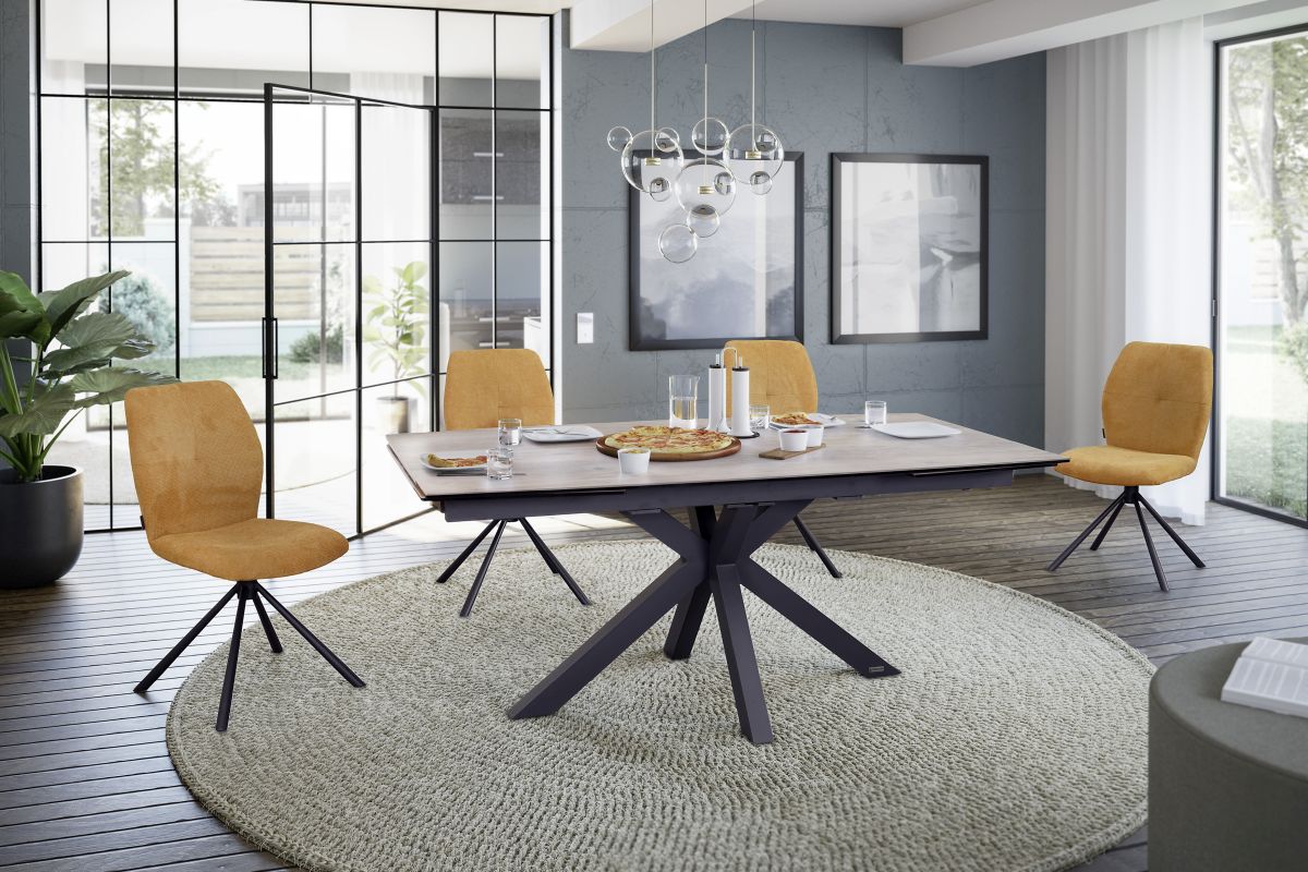 Gestell: 4 Fuß, Metall schwarz, drehbar, Sitzhöhe: ca. 49 cm