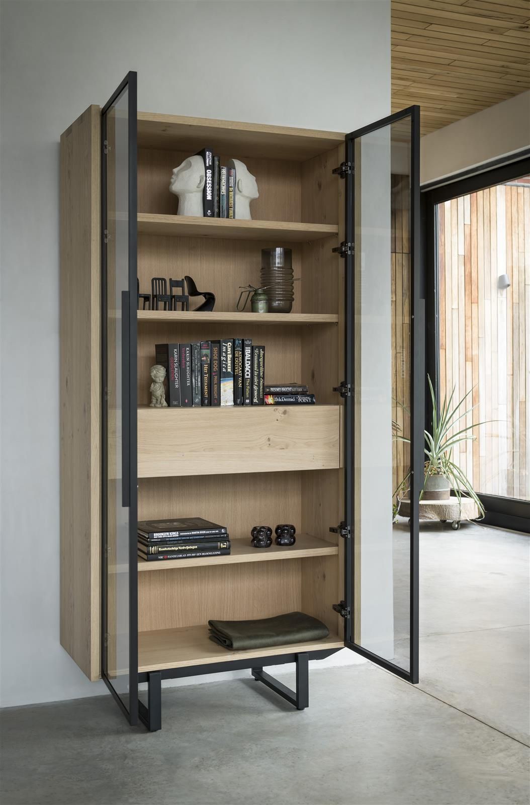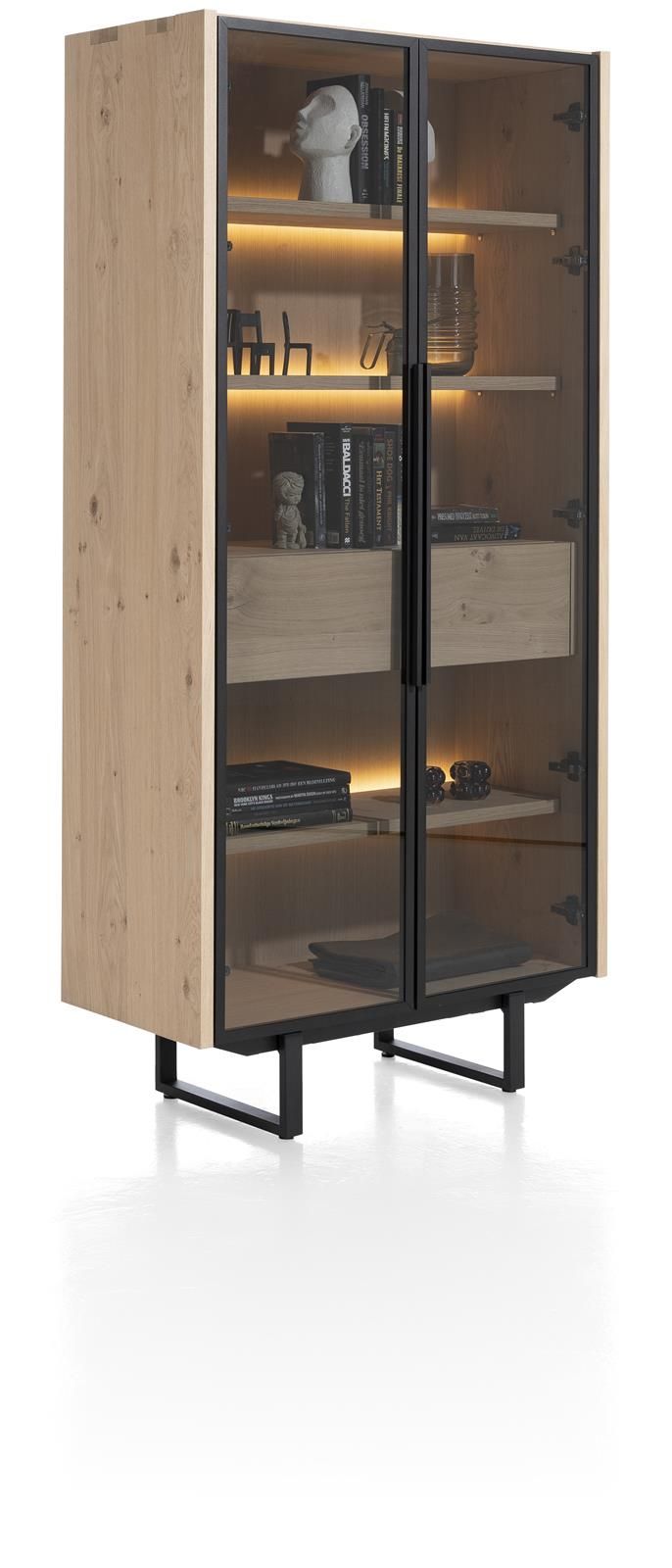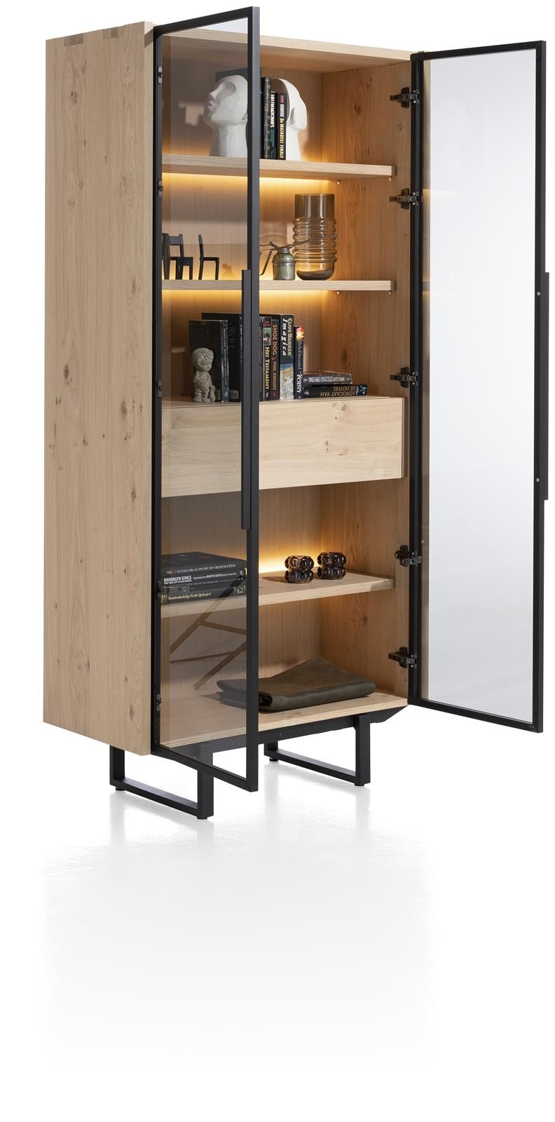 2 Glastüren mit Rahmen und Gestell Metall schwarz, 1 Schublade und 3 Einlegeböden